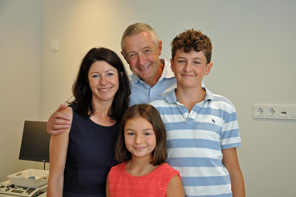 Angela Leinser-Möschel mit Mann Martin und den Kindern Romina und Marius.