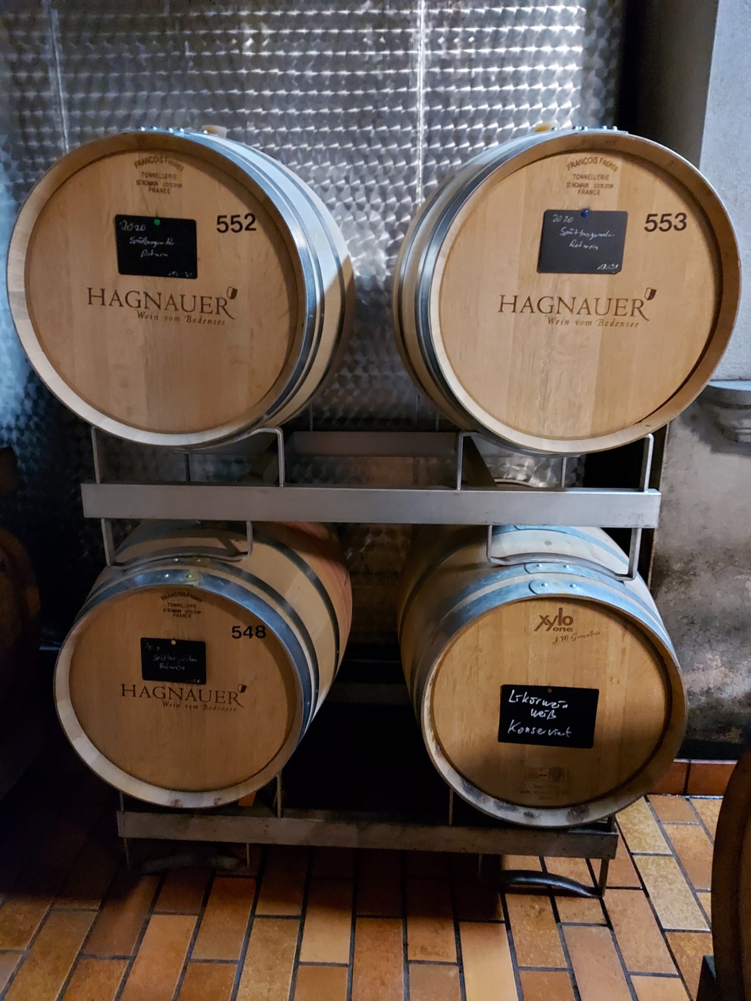 Weinfässer im Weinkeller