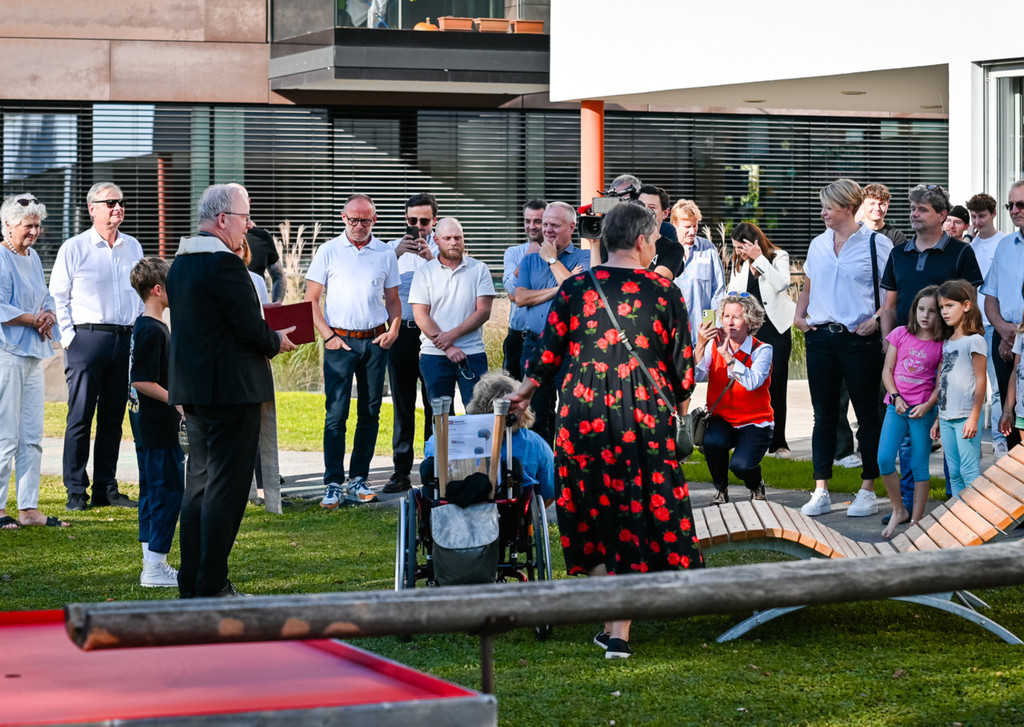 Zahlreiche Gäste wohnten der feierlichen Eröffnung des neuen, behindertengerechten Spiel- und Bewegungsangebot am Schulheim Mäder bei
