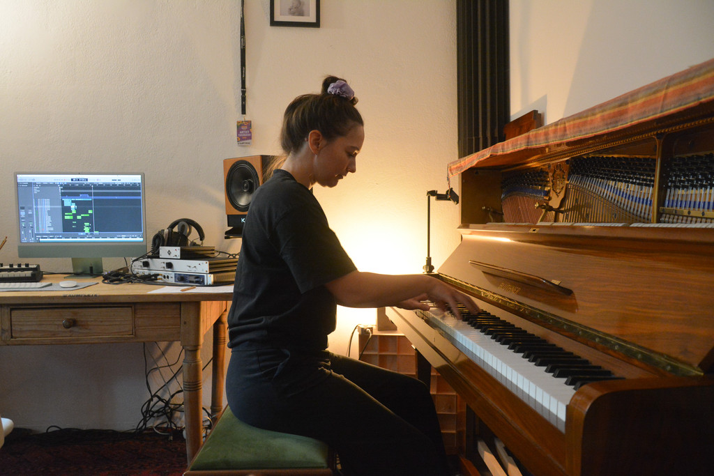 Julia Zischg spielt am Klavier und formt dort ihre Lieder.