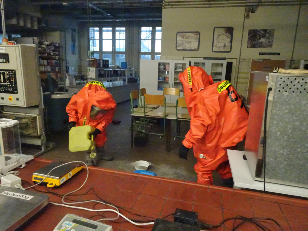 Angenommen wurde auch ein Gefahrguteinsatz in der Chemie-Werkstatt.