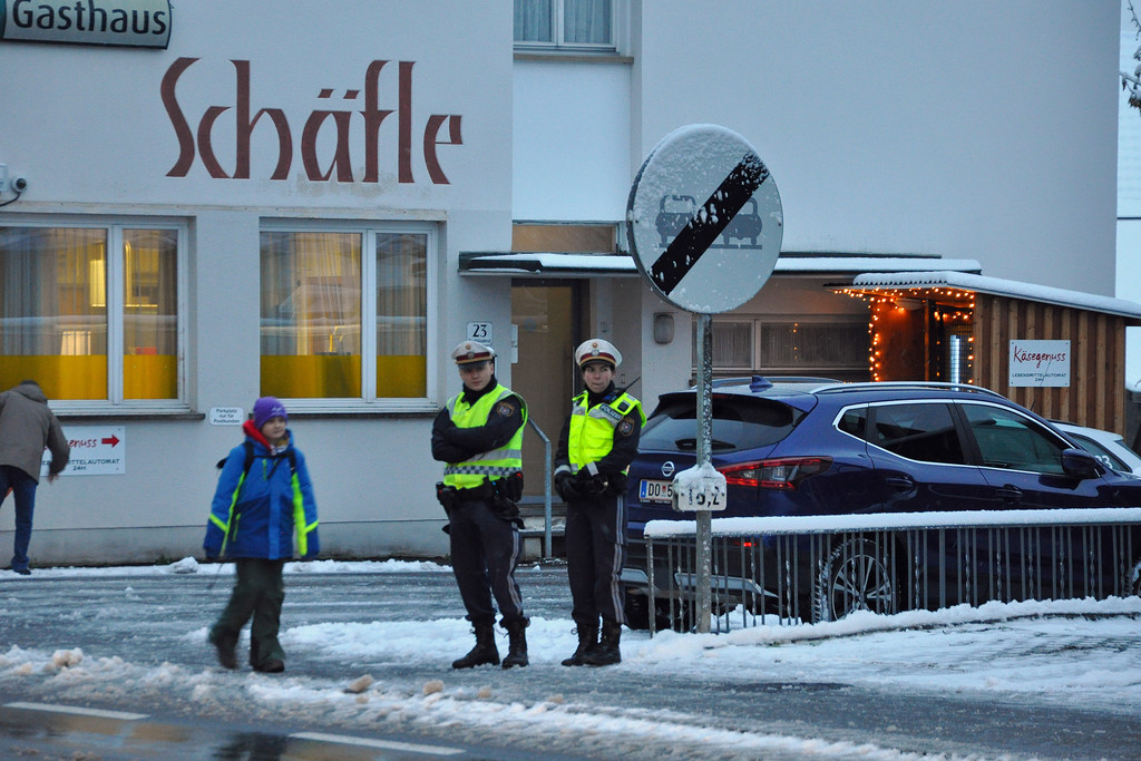 Die Polizei unterstützt die Bemühungen um mehr Verkehrssicherheit in Haselstauden und zeigt regelmäßig Präsenz vor Schulbeginn.