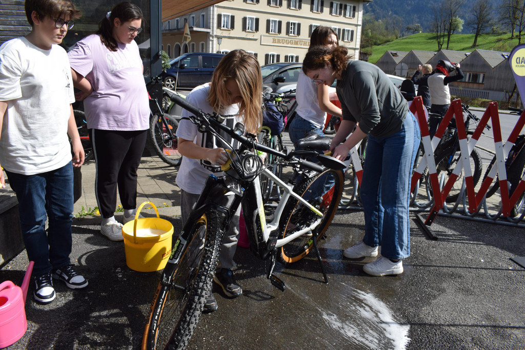 Die Fahrrad-Putzstation der Egger Mittelschüler war stark frequentiert.