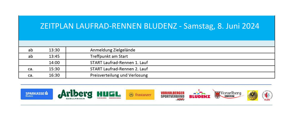 Zeitplan Laufrad-Rennen Bludenz