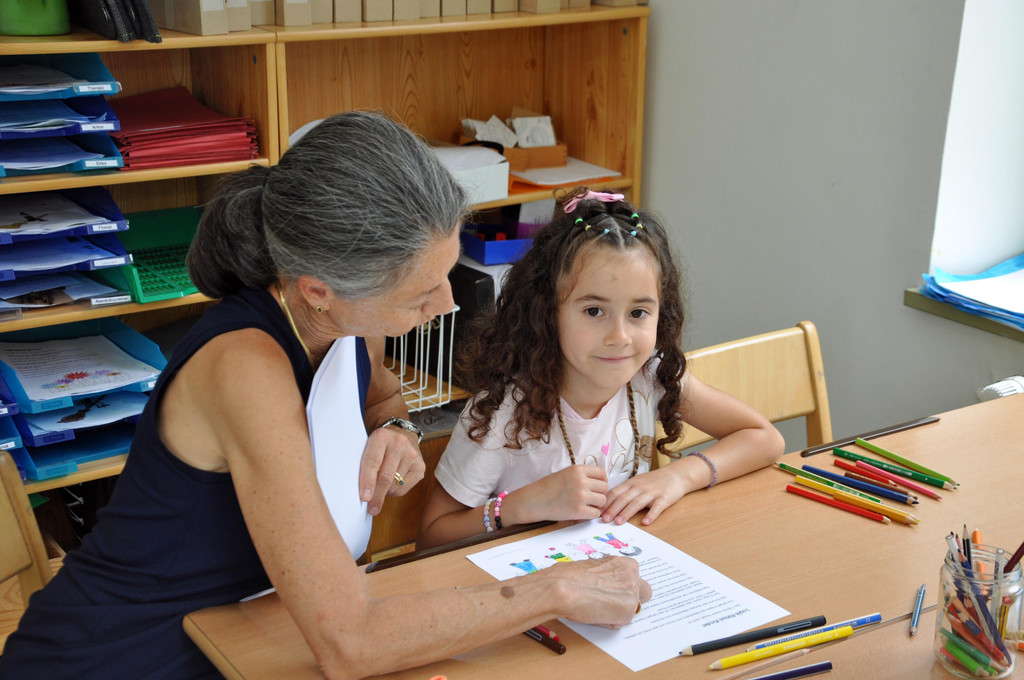 Die Lehrerinnen unterstützen ihre Schützlinge bei kniffligen Aufgaben.