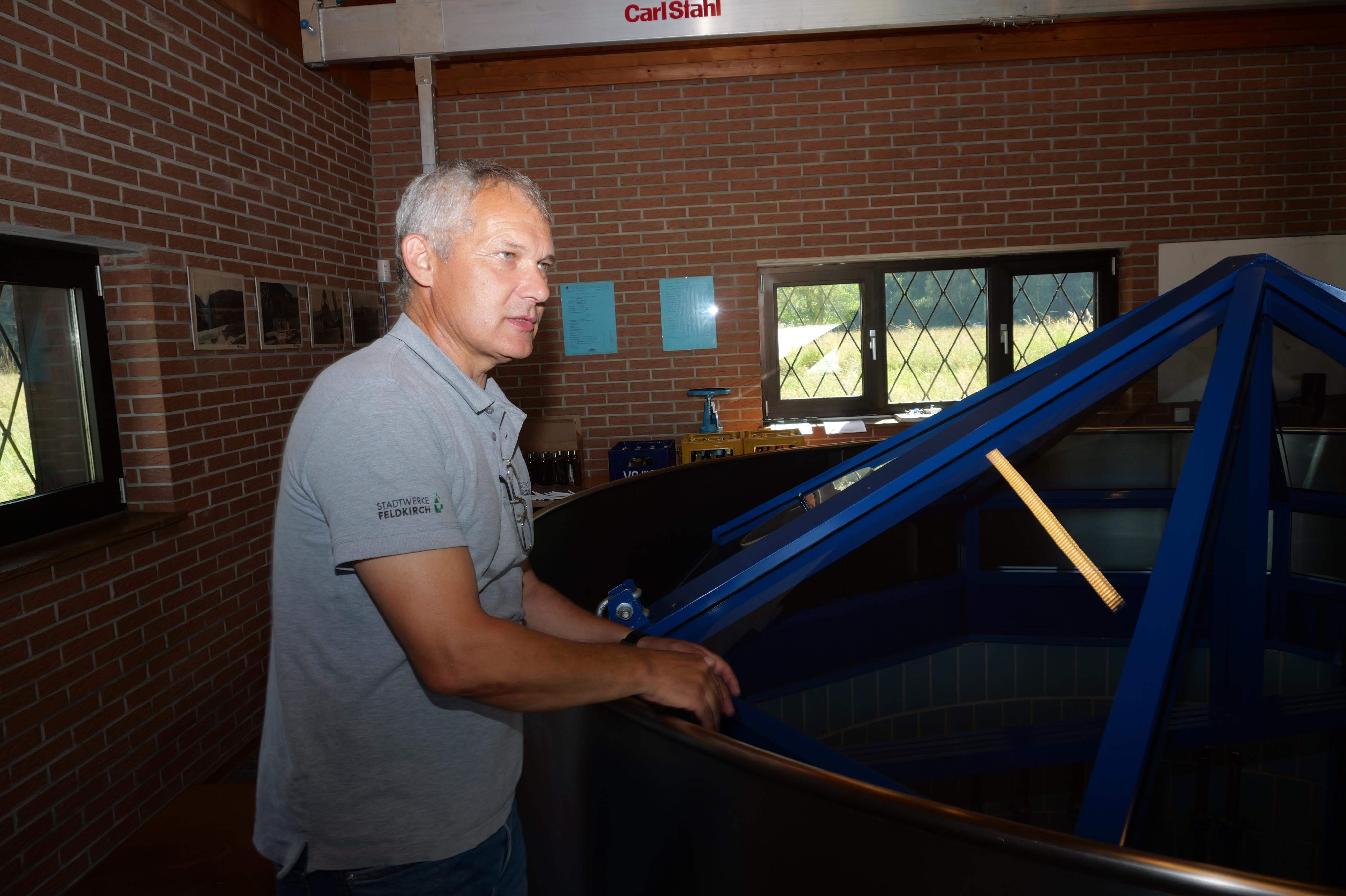 Johannes Marte, Bereichsleiter Wasser der Stadtwerke Feldkirch, zeigt die moderne Technik des Horizontalfilterbrunnens im Frastanzer Ried.