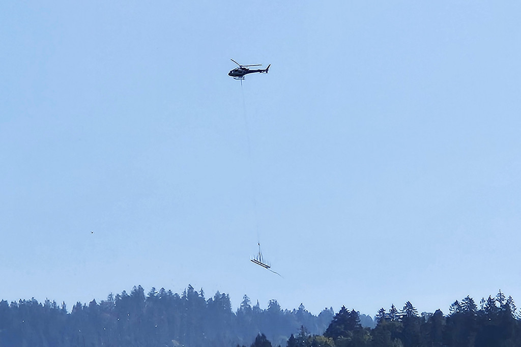 Per Hubschrauber kam die neue „Grenzbrücke“ zum Einsatzort am Pfänderhang (© Klaus Küng)