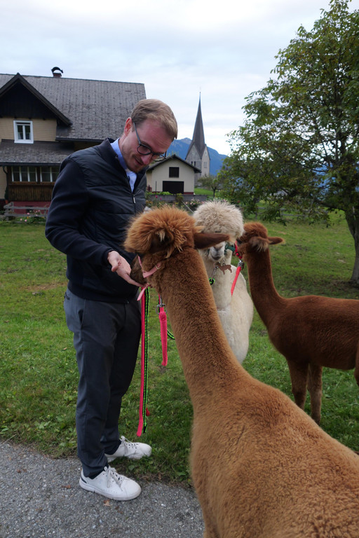 Kaplan Mathias Bitsche nahm sich auch Zeit, die Alpakas zu füttern.
