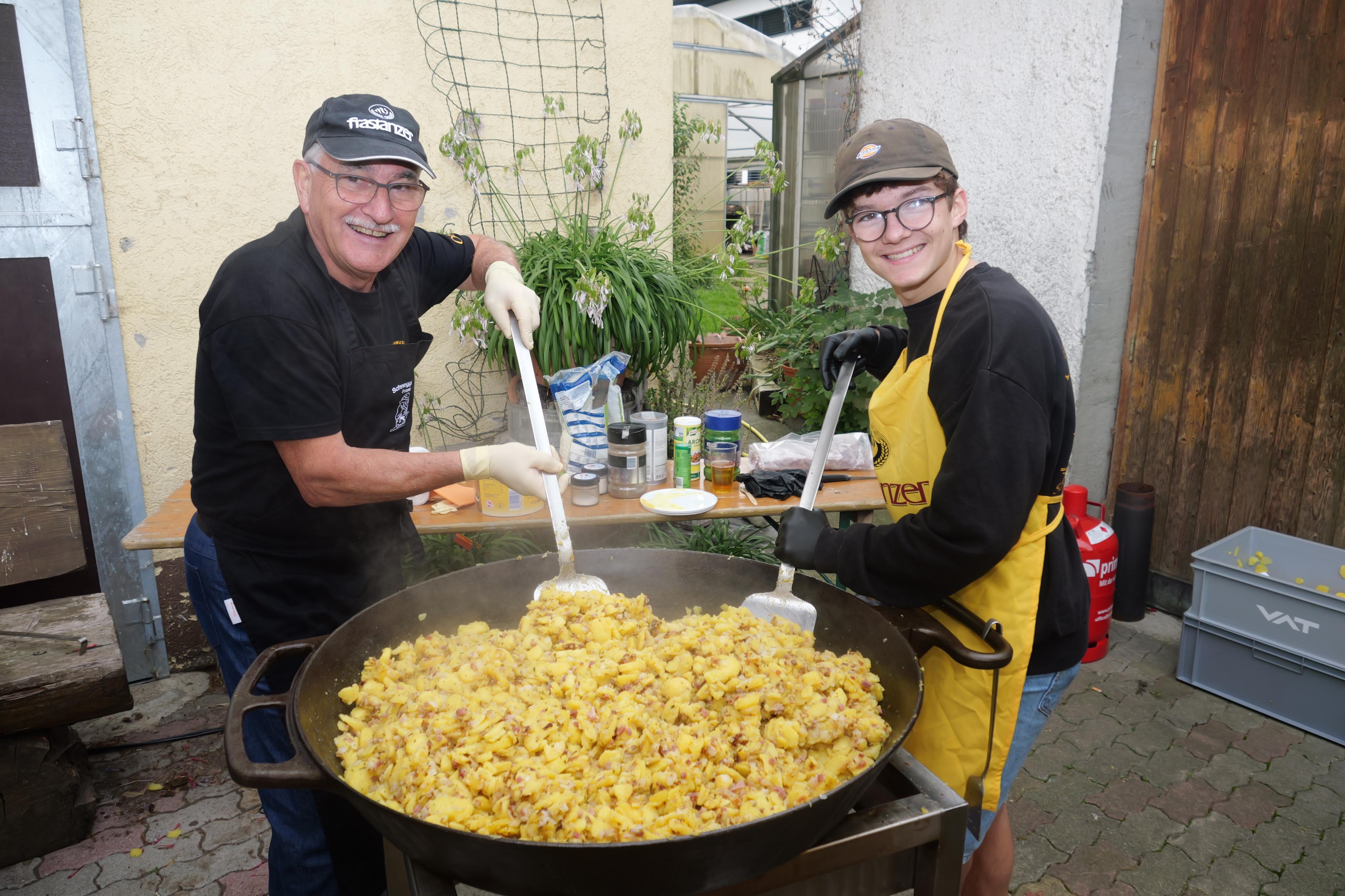 Otto Lederle und Simon Decker rührten die Gröstl-Pfanne an.
