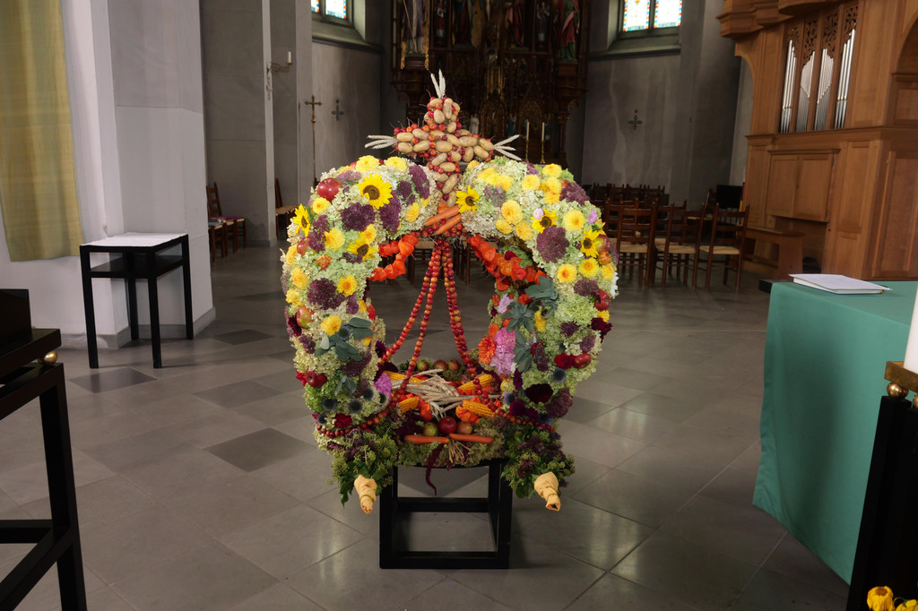 Die von Agathe Egger wunderschön geschmückte Erntedankkrone.