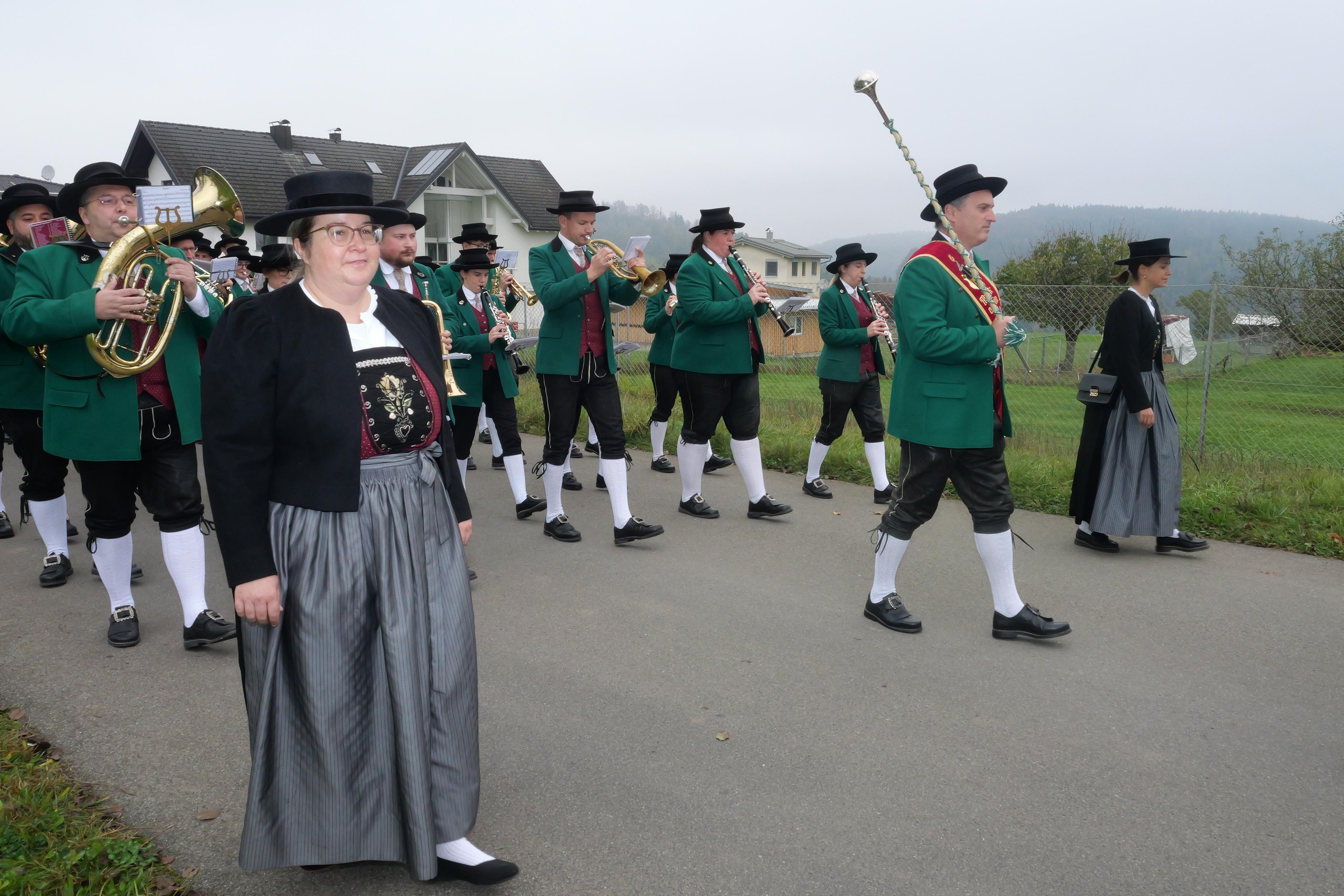 Der Musikverein Frastanz marschiert zur Messfeier in der Kapelle Maria Ebene.