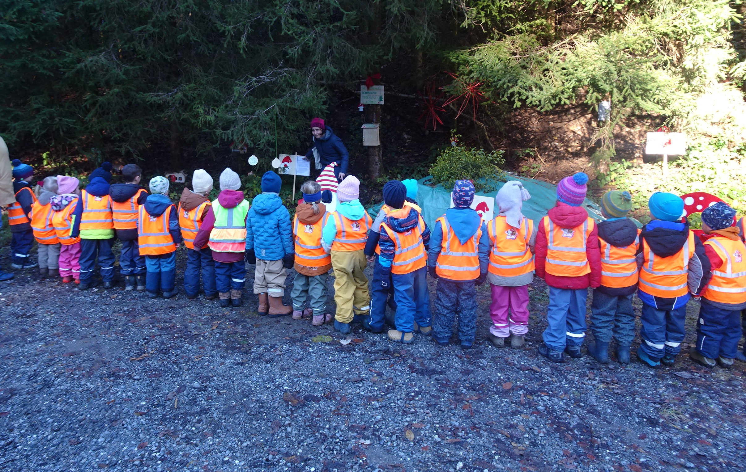 Gespannt versammelten sich die Kindergartenkinder vor der ersten Wichtelstation.