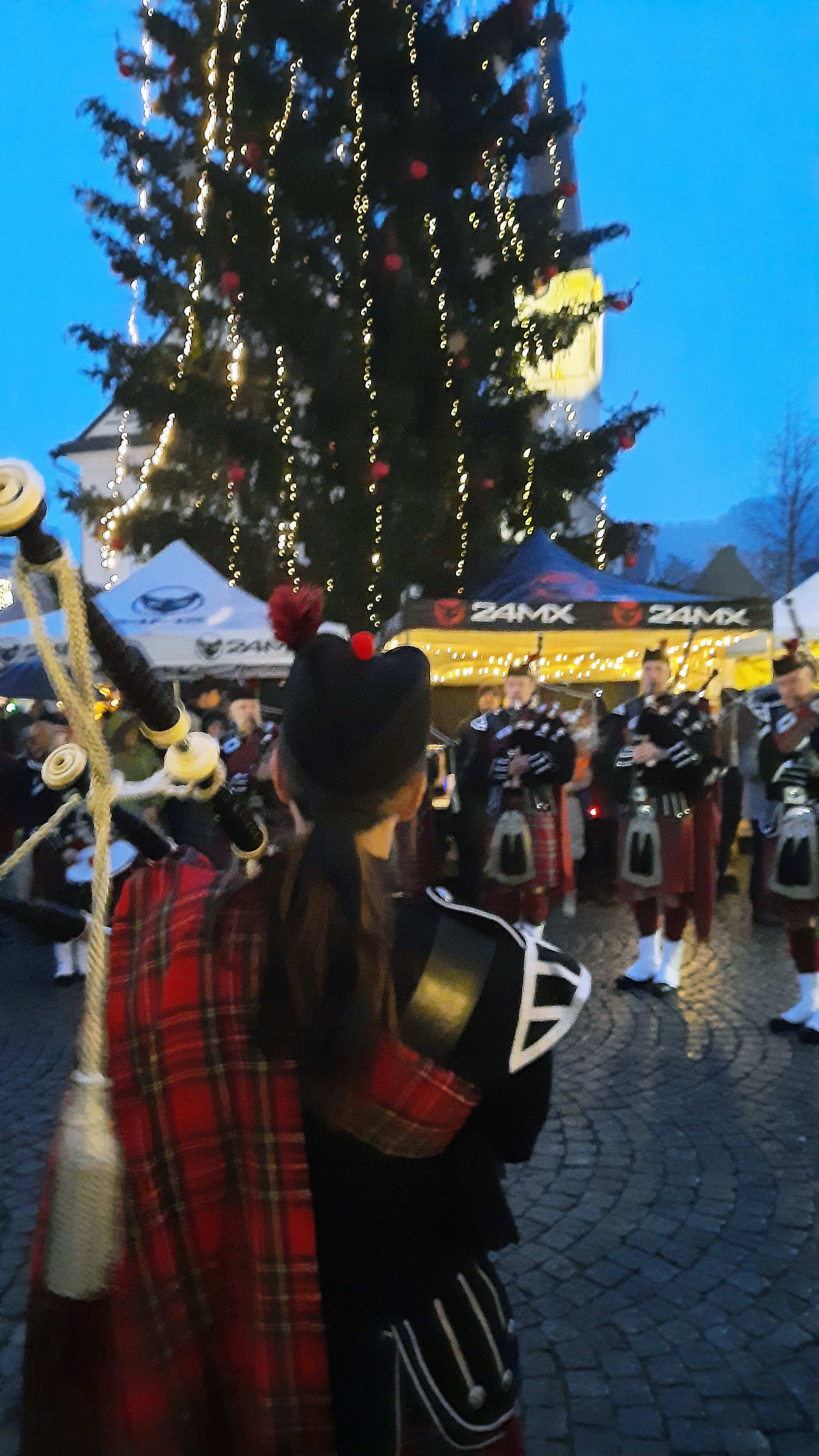The First Leiblach Valley Pipes and Drums sorgten für weihnachtliche Stimmung.