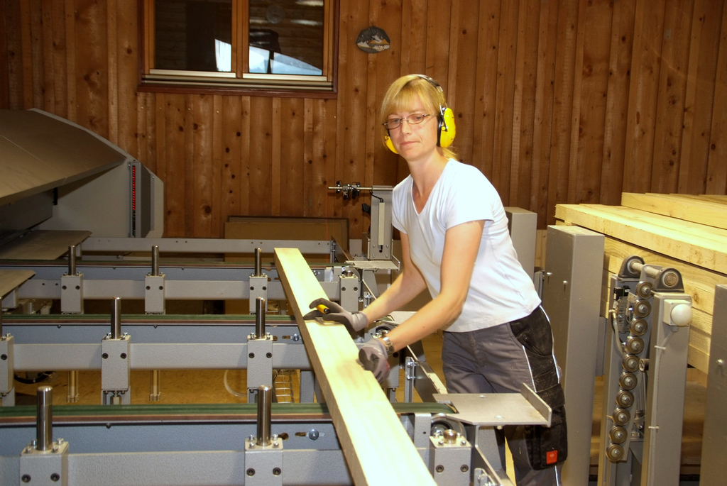Beim Sägewerk Erhart werden Frauen für die Qualitätskontrolle eingesetzt.