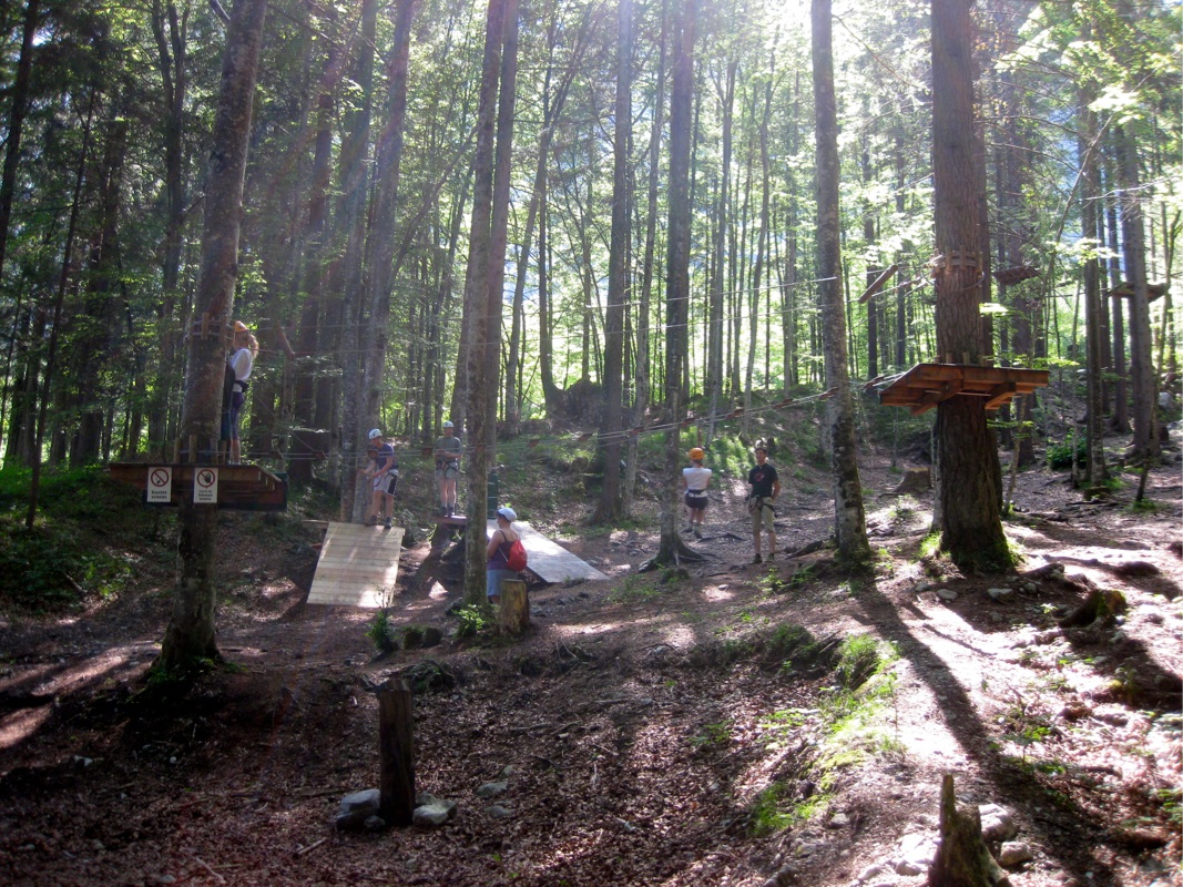 Klettervergnügen auf einfachen Parcours und anspruchvolle Parcours in schwindelnder Höhe bieten für jede Altersstufe das Richtige.