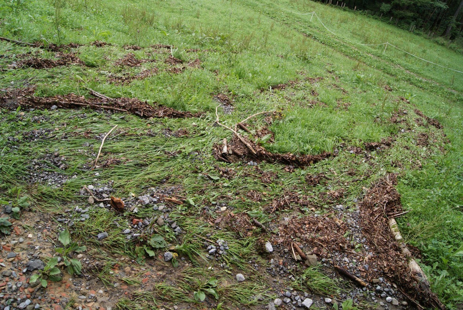 Geröll wurde in die Wiese geschwemmt