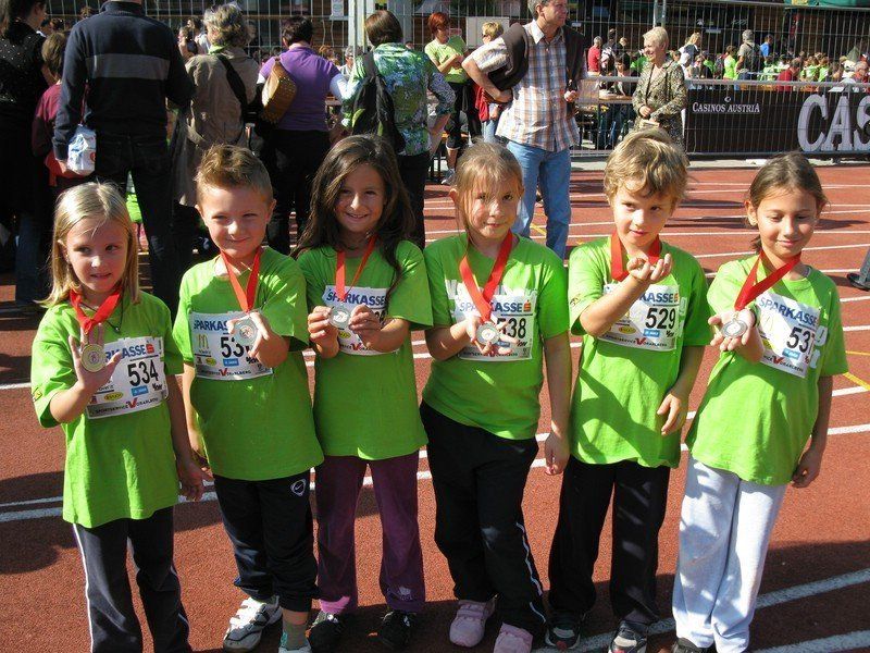 Stolz zeigen die Volksschüler von Hard Markt ihre Medaillen
