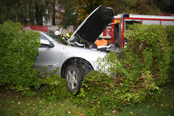 Auto im Garten gelandet