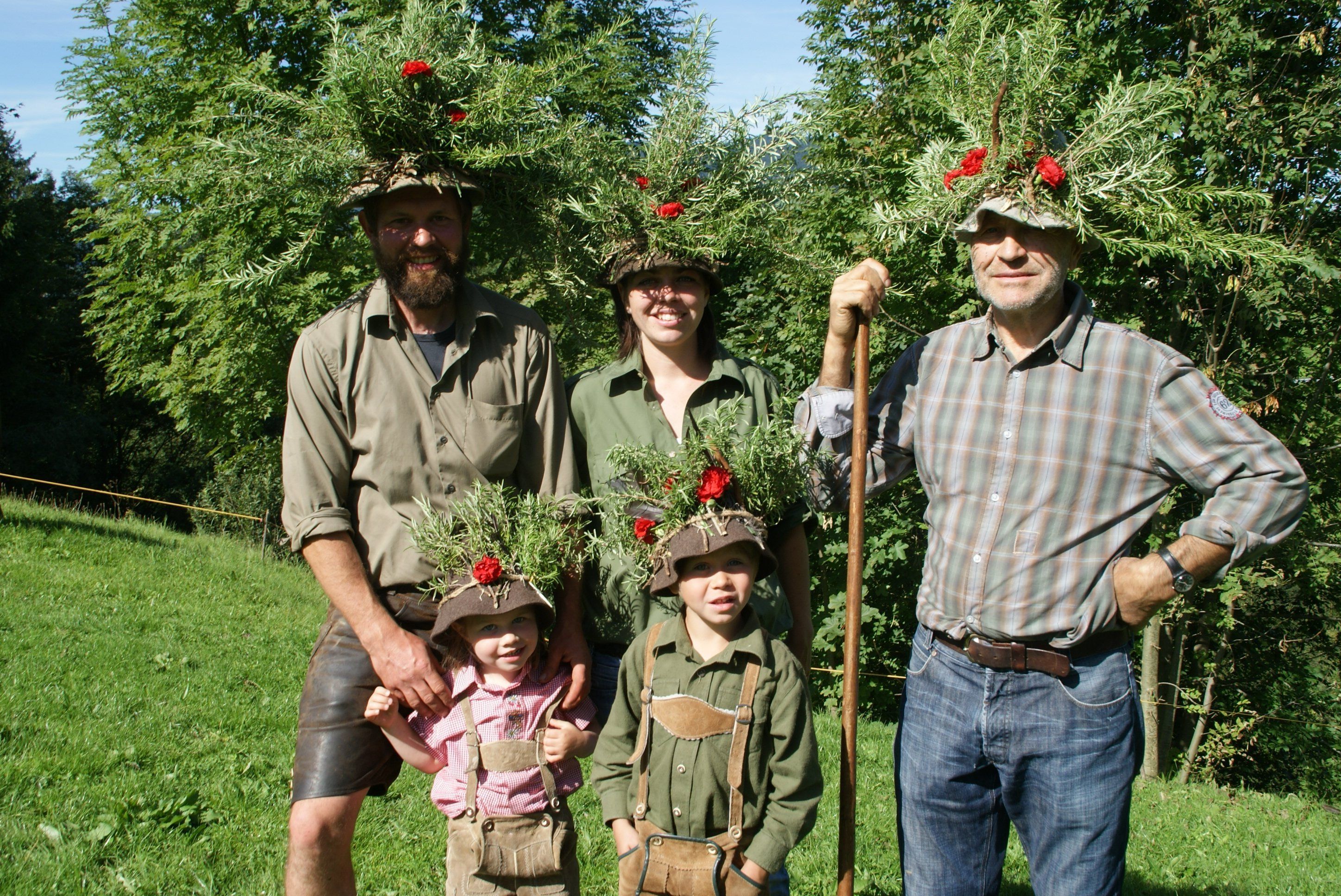 Die Älplerfamilie Hannes, Doris, Emma, Heinrich und "Ihne" Friedl