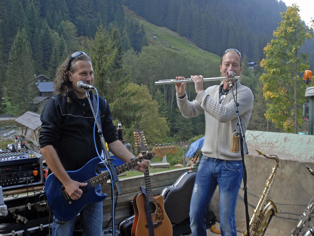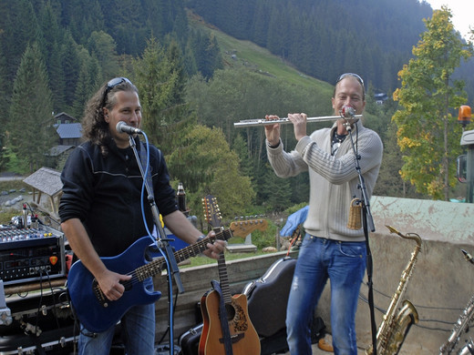 Jürgen Ganahl und Christian Stroppa bei ihrem Auftritt beim Gasthaus Fellimännle im Silbertal. (Foto: Gerhard Scopoli)