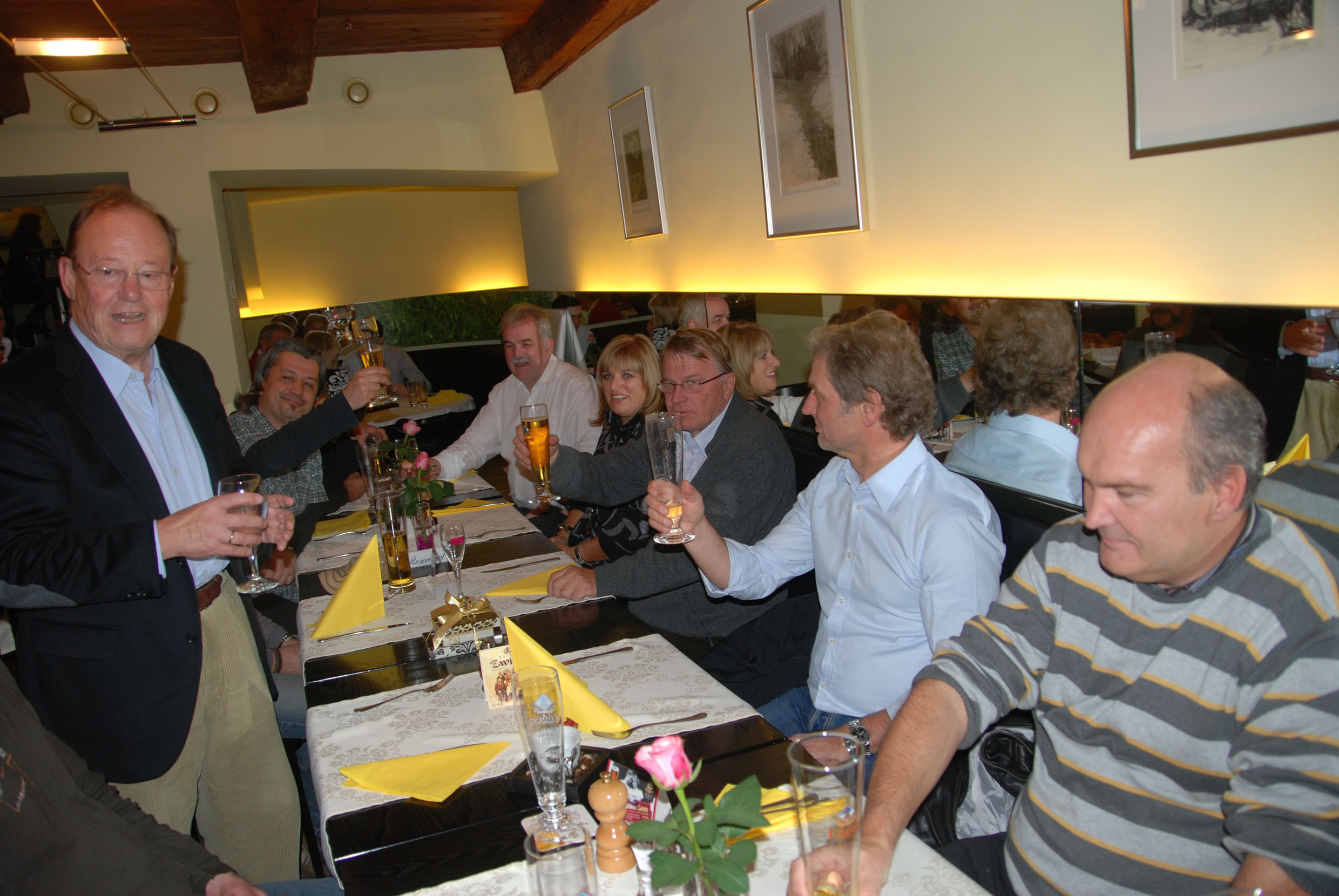 Die Freunde prosten dem Geburtstagskind zu.
