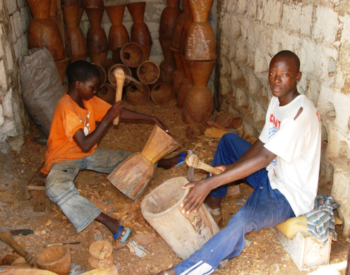 Handgearbeitete Trommeln aus Afrika gibt es auch im Afrikashop von Natalie Moosmann im Trommeltreff.