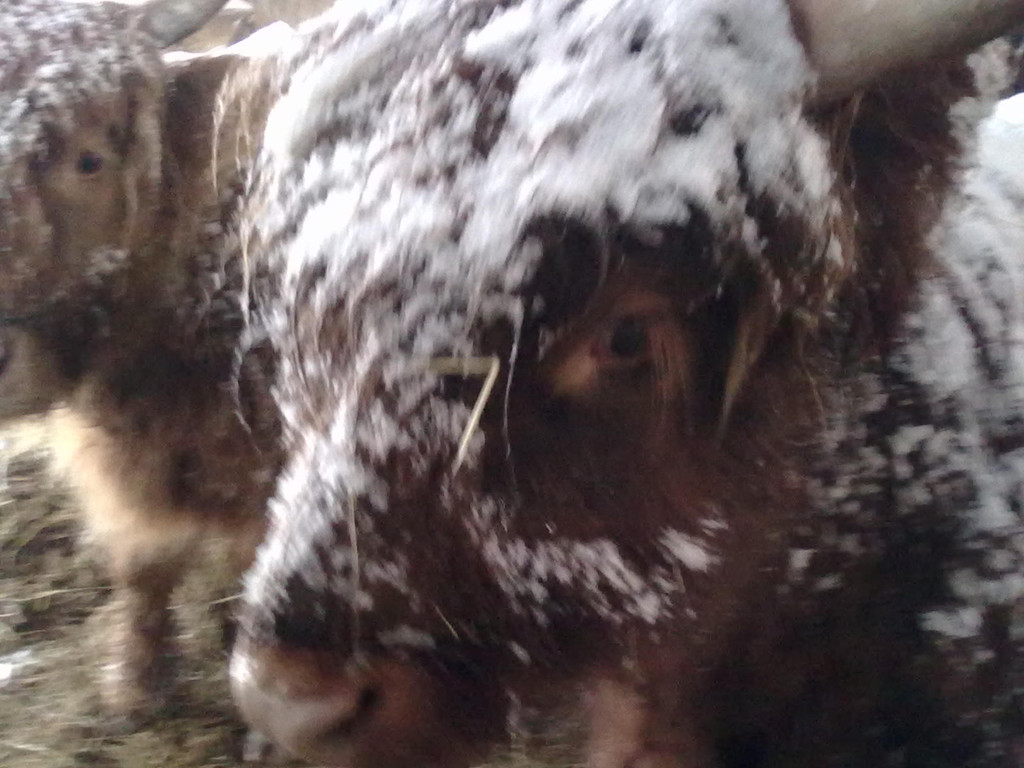 Hochlandrinder im Schnee