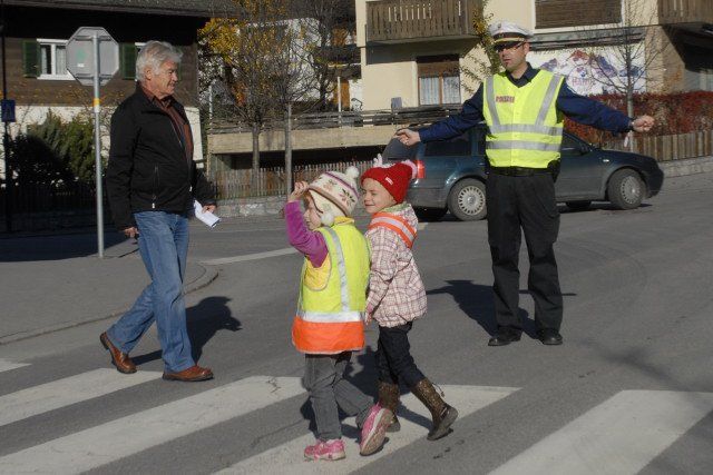 Im Ortszentrum von Schruns lernten die 3- bis 5-jährigen Kinder des Kindergartens St. Jodok jüngst, wie sie sich im Straßenverkehr richtig zu verhalten haben. (Foto: Gerhard)