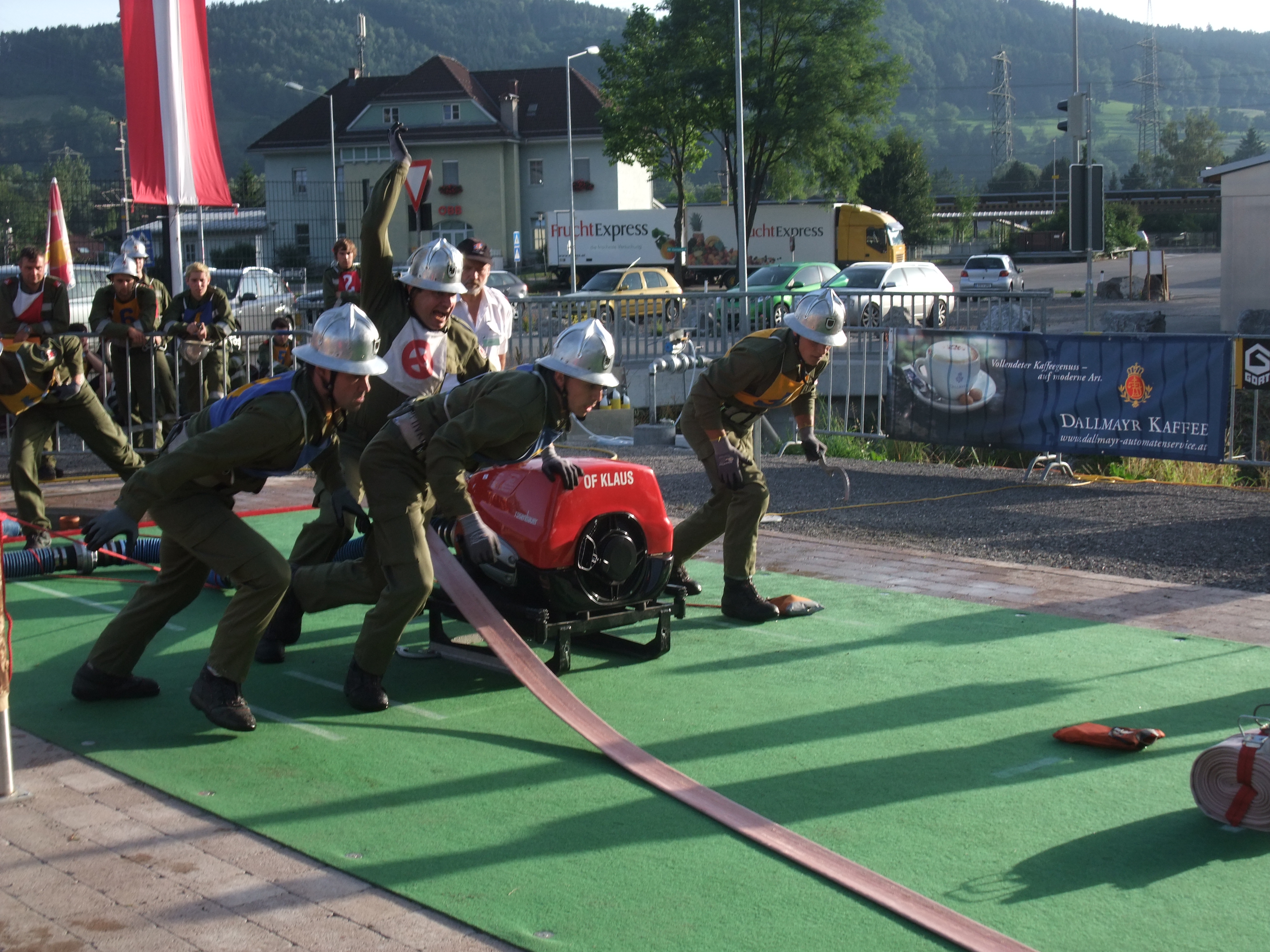 Beim Wettkampf zeigen Feuerwehrmänner ihre sportliche Seite.