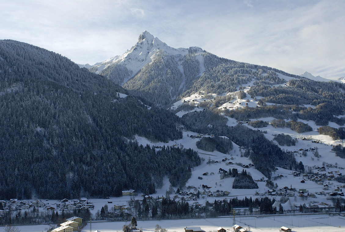 Blick von Schruns-Hof nach Tschagguns mit Mittagspitze, 2.168 Meter. (Foto: Gerhard Scopoli, 19. Dezember 2010)