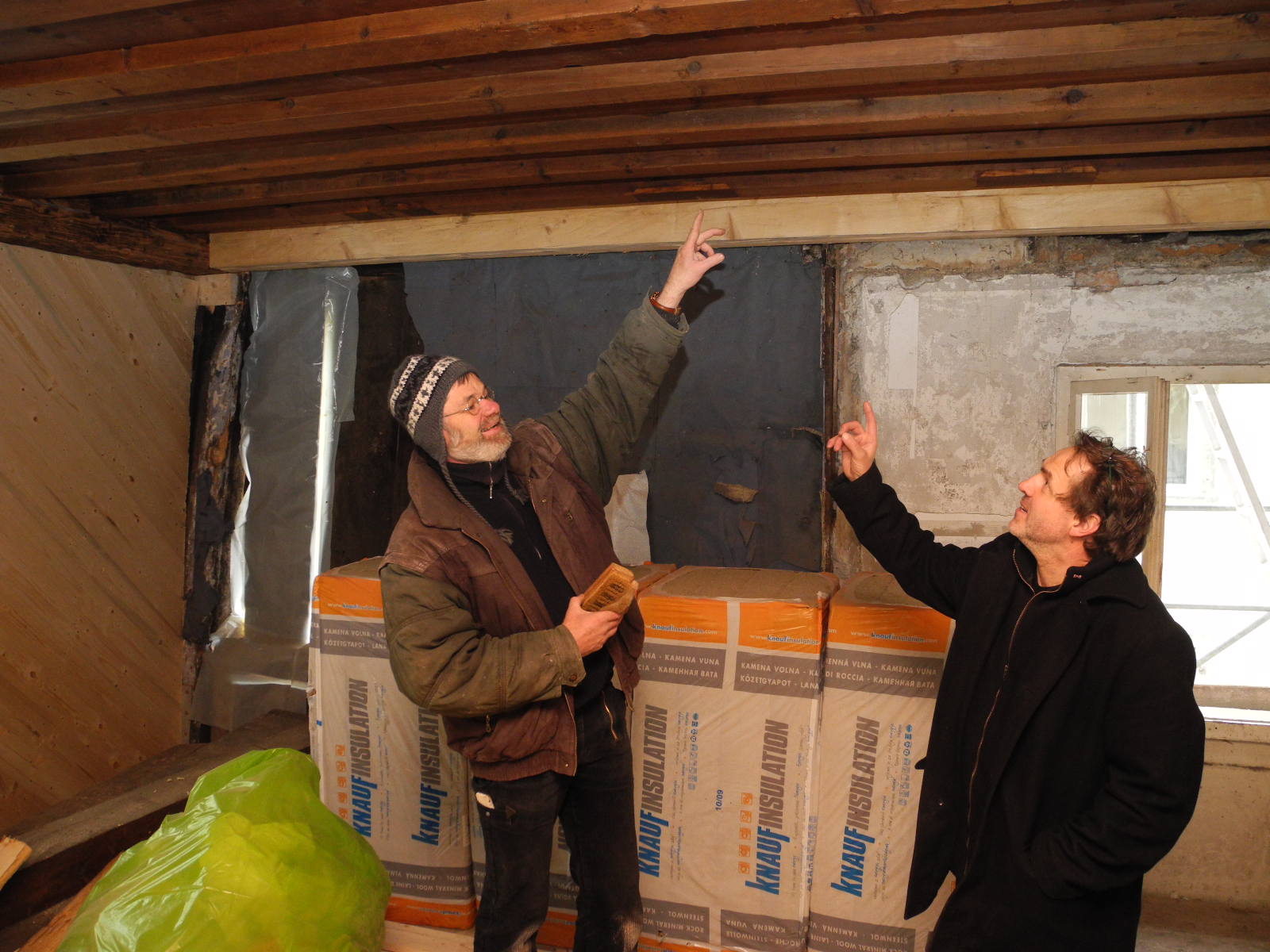 Restaurator Helge Bartsch mit Arch. Josef Schwärzler in einem Raum mit einer hochwertigen Gotischen Decke im Objekt Rosengasse 3