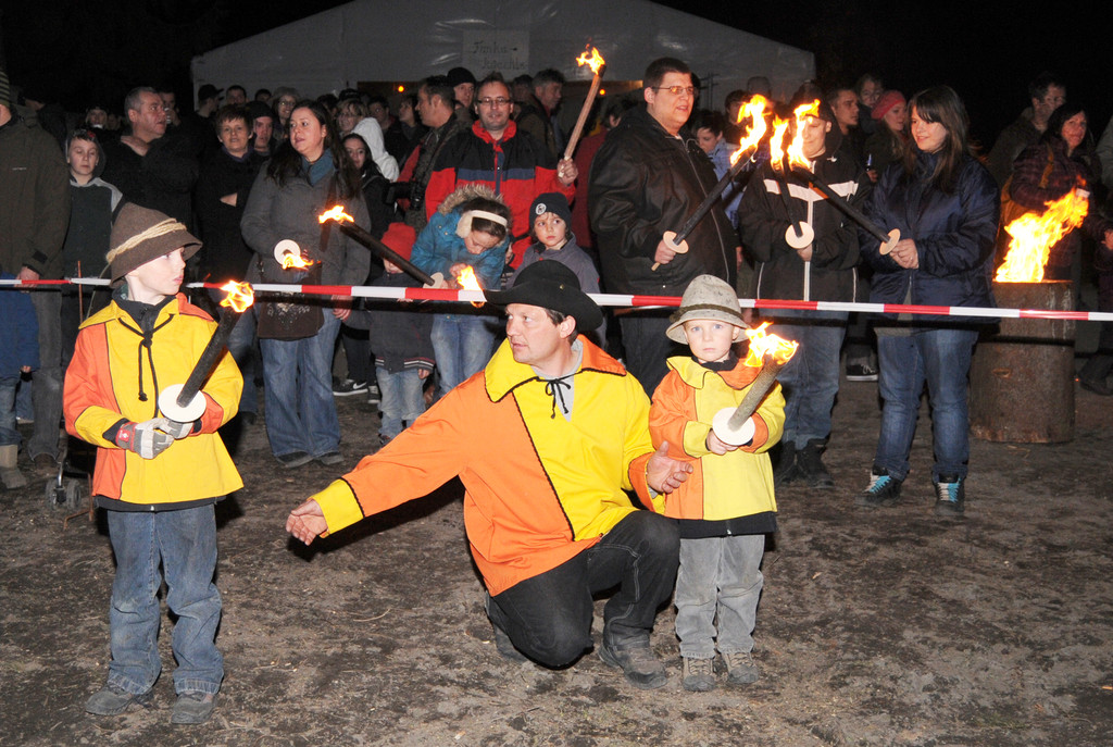 Die Kinder mit den Fackeln sind bereit zum Anzünden