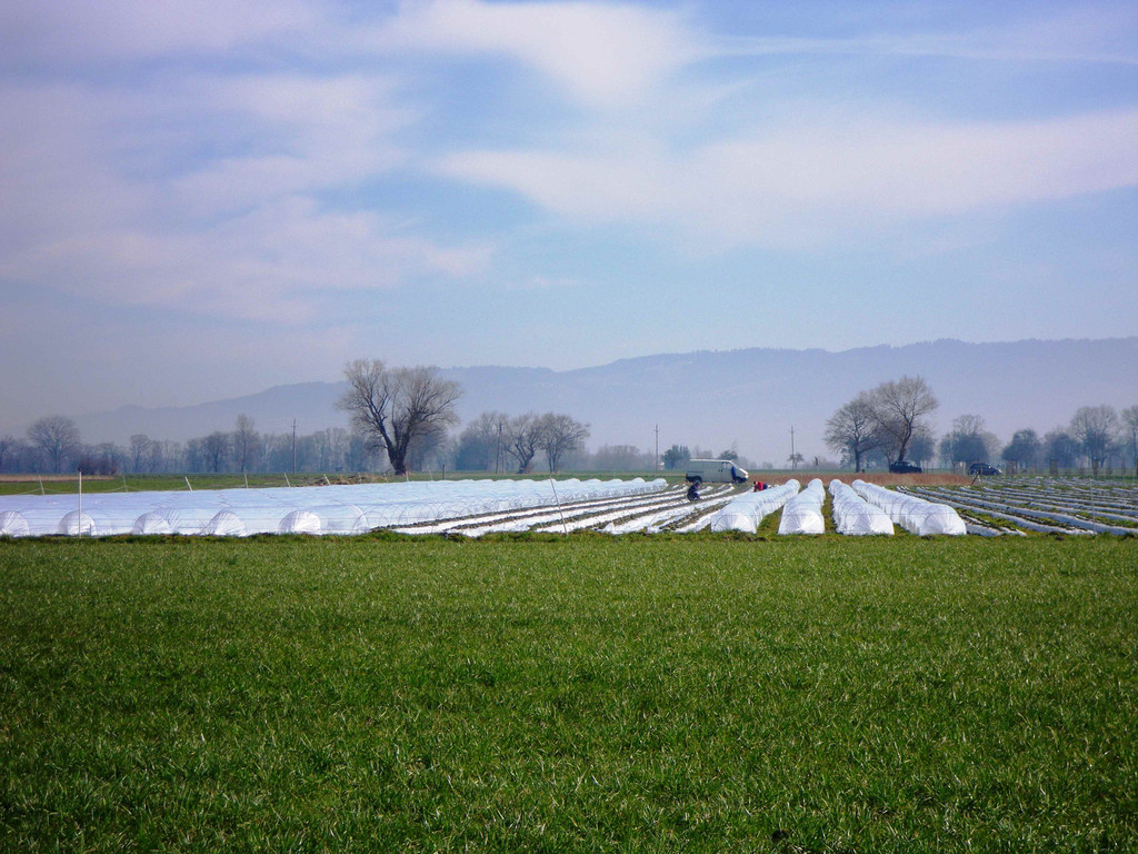 Frühjahrsgärtnern in den Erdbeerfeldern