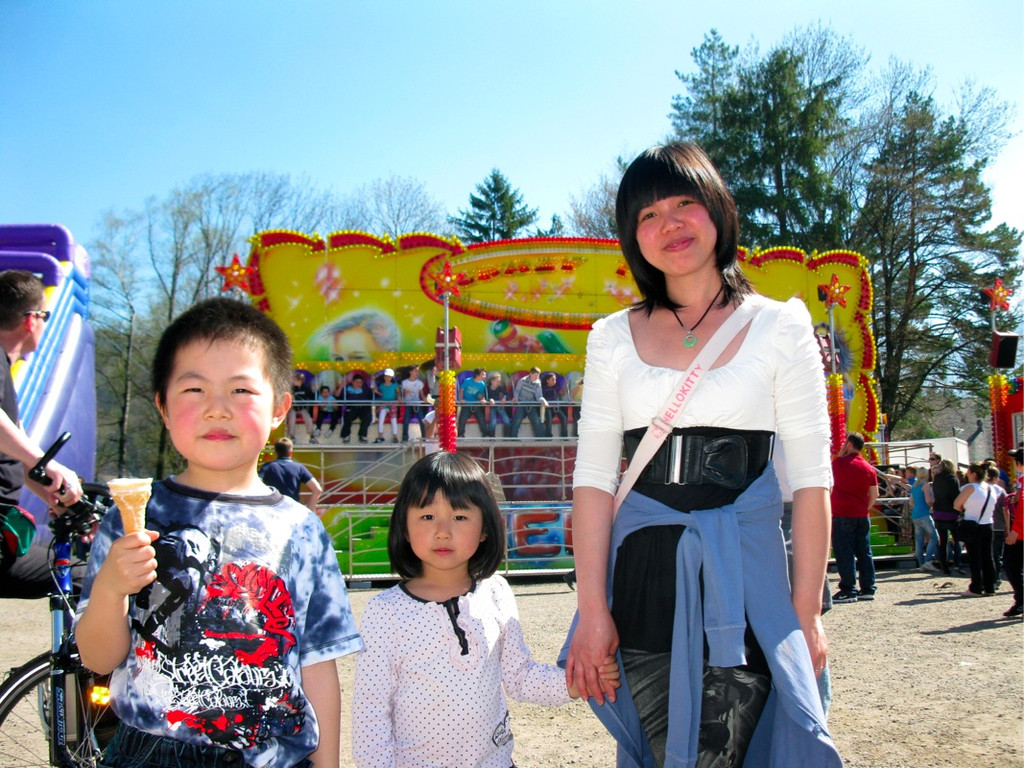 Guo Yun Yu und Yang Yang kamen mit ihrer Mutter