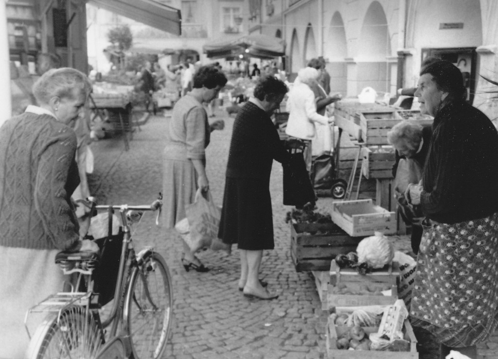 Diese Marktfrau (rechts im Bild) war ein Original des Feldkircher Wochenmarktes