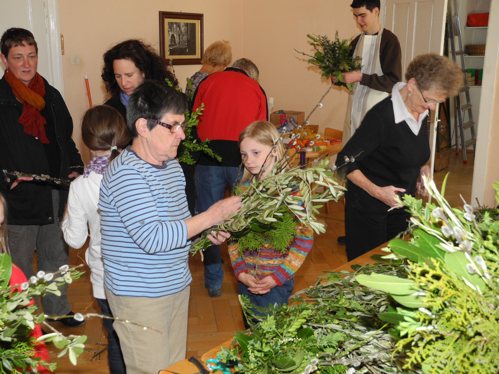 Palmbuschenbinden und Palmsonntagprozession