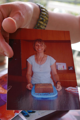Lächelnd präsentiert Mairi auf einem Bild den Zucchinikuchen, der während der Wehentätigkeit gebacken wurde