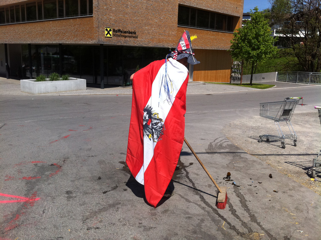 Der Platz vor dem Postamt wird von den Burschen mustergültig sauber gehalten