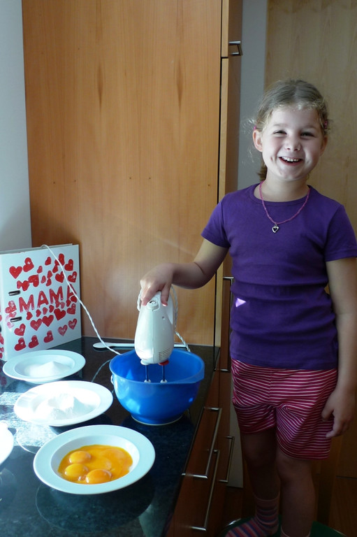 Emma hilft beim Kuchenbacken für die Radfahrer.