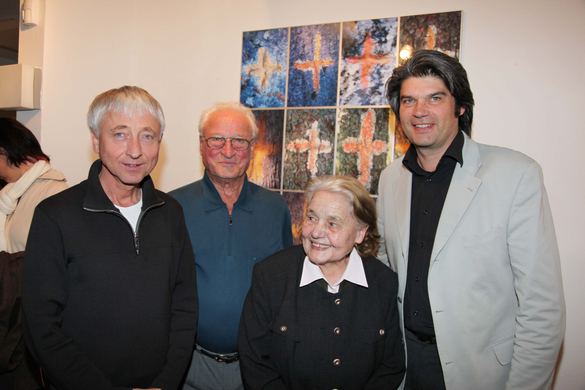 Komponist Herbert Willi (l.) mit Papa Oskar, Rosl Bitschnau und Bürgermeister Erwin Bahl (r.).