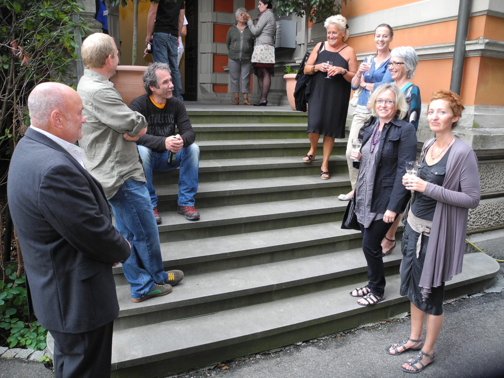 Besucherinnen und Besucher stehen Schlange vor der Villa