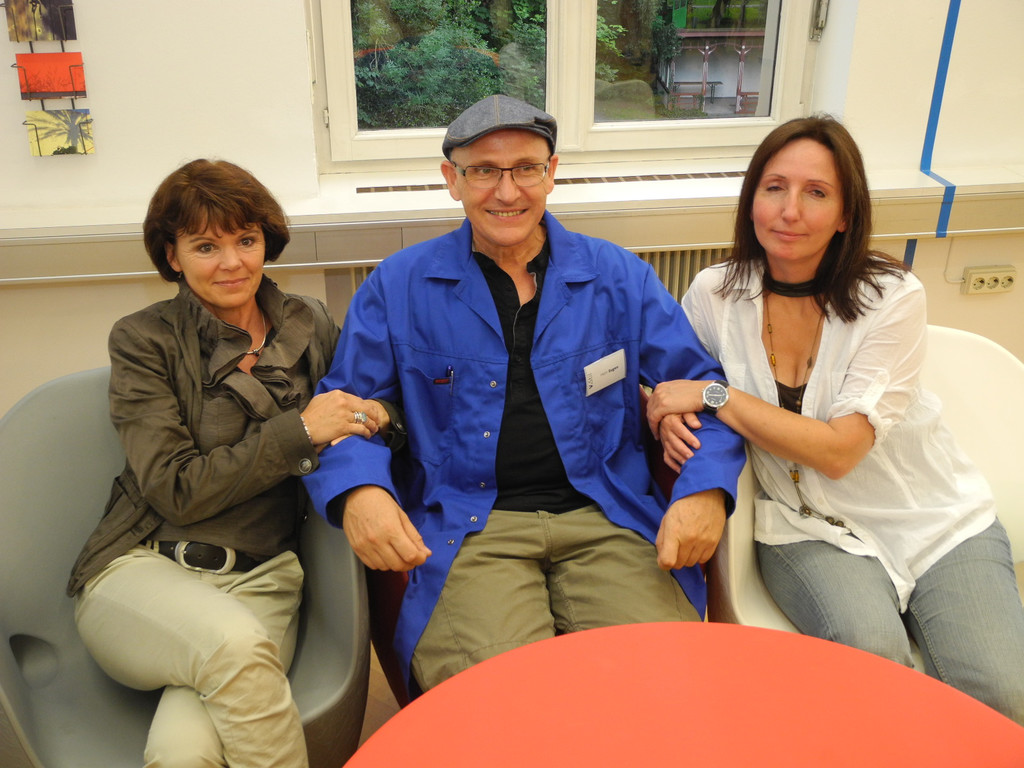 (v.l.) Roswitha Buhmann, Eugen Wusch und Christine Lingg auf Designmöbel von Wusch.