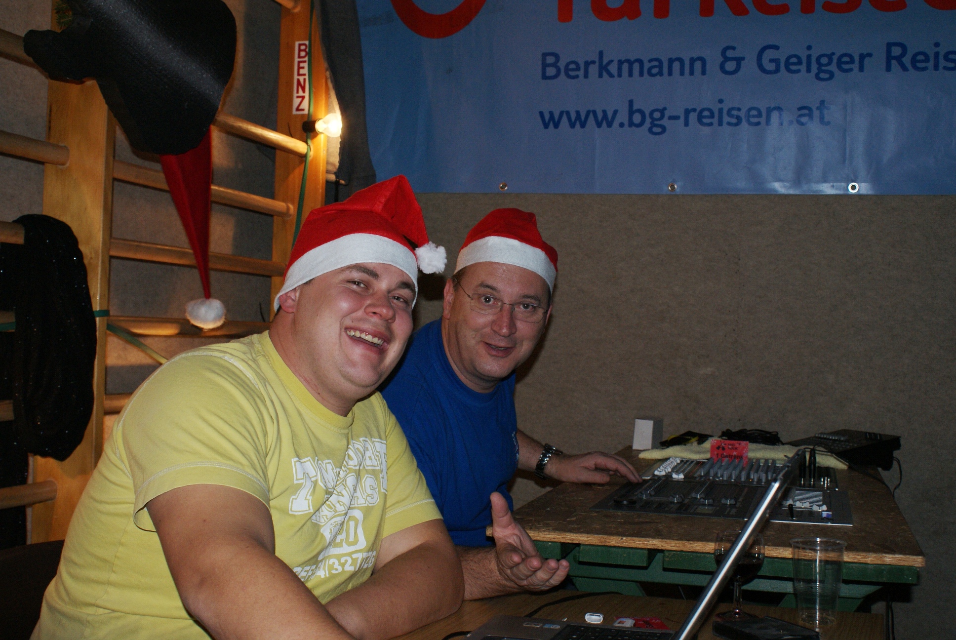 Zwei Weihnachtsmänner führten Regie: DJ Fancy und Licht- und Tonmeister Manfred