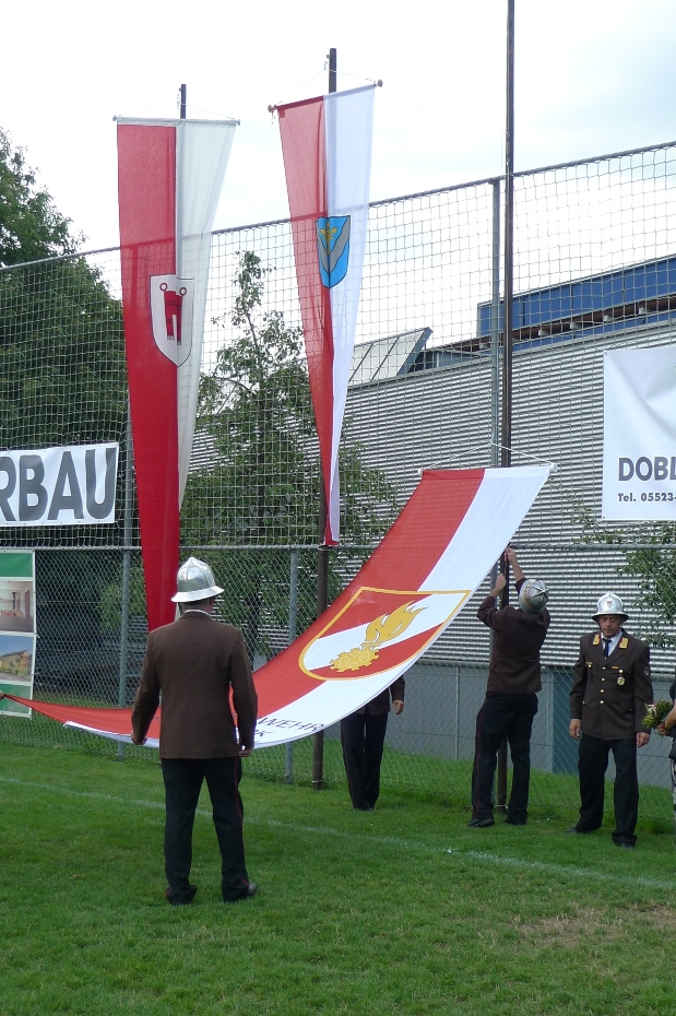 Die neue Bezirksfahne wird zum ersten Mal gehisst.