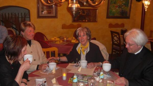 Der Autor Gerhard Dick und die Pianistin Heike Glinka mit Besuchern im Anschluss an die Veranstaltung im Hohenemser Palast