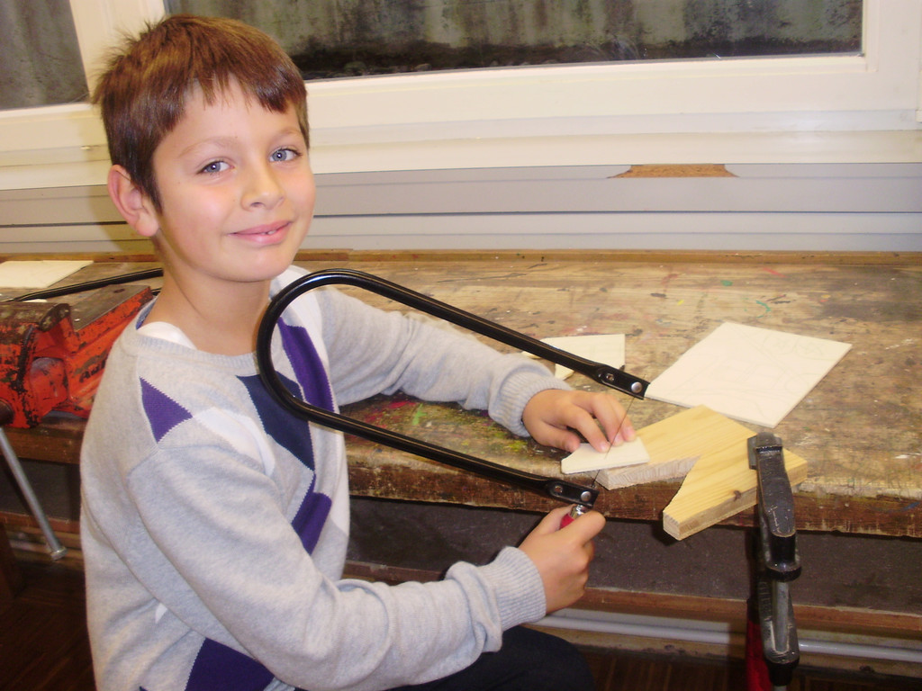 Manuel ist für seine Winterlandschaft fleißig am Sägen.