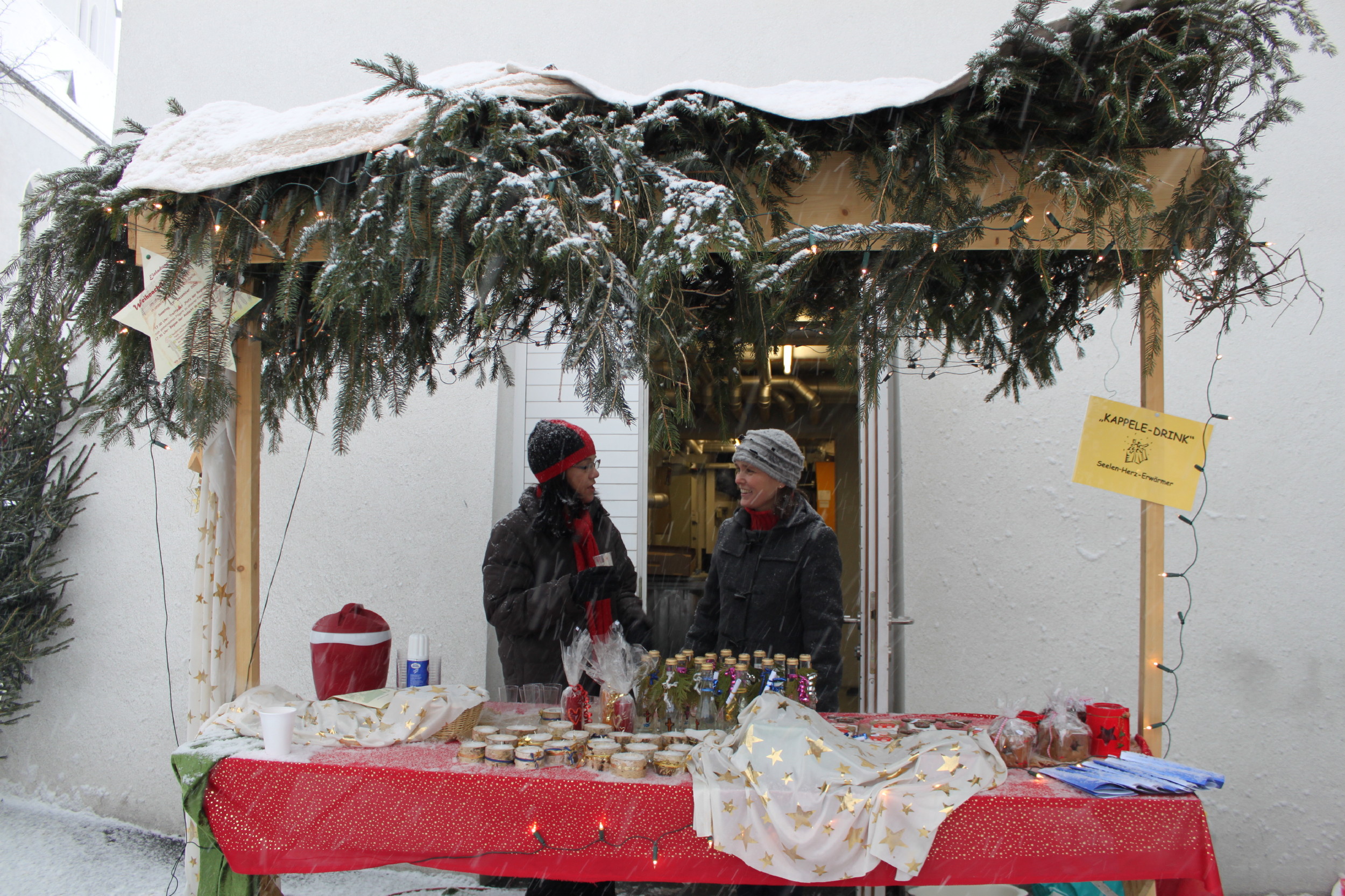 Der Kapellenverein servierte nebst bekannten Kappele-Drinks Lourdes-Wasser, Hildegard-von-Bingen-Nervenkekse und noch viele Besonderheiten.v.l. Obfrau Carmen Nachbaur und Elke Nachbaur-Marte