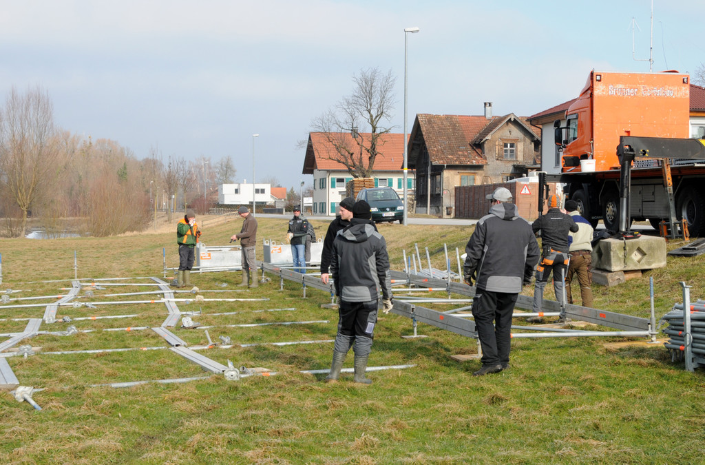 Zunftmitglieder beim Zeltbau in Gaißau