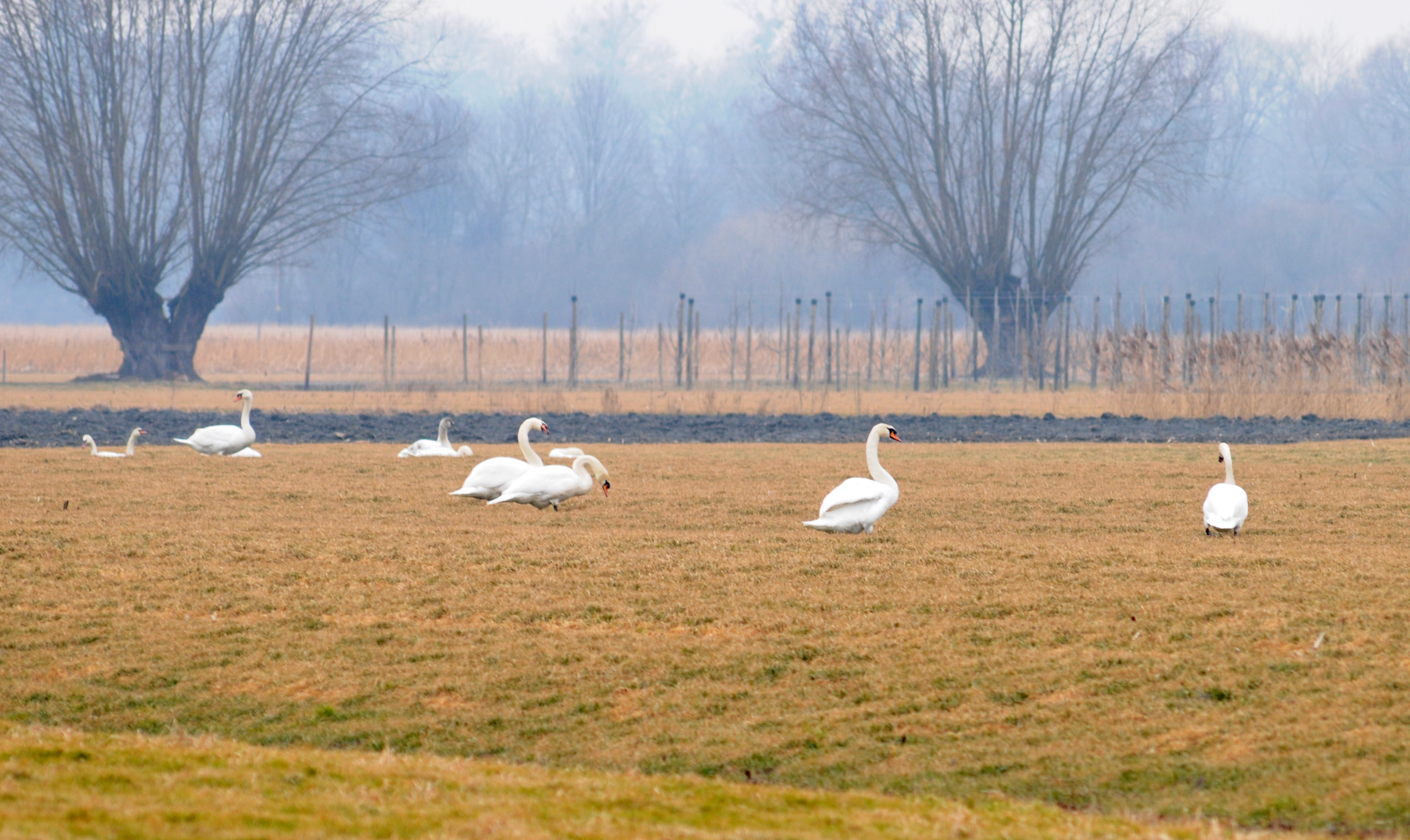 Ansammlung von Schwänen am Ortsrand von Gaißau