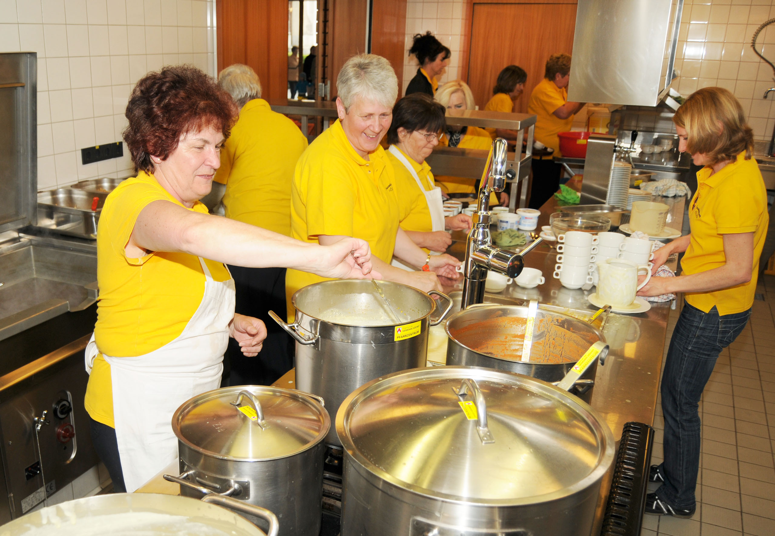 Hochbetrieb in der Suppenküche des Pfarrsaales
